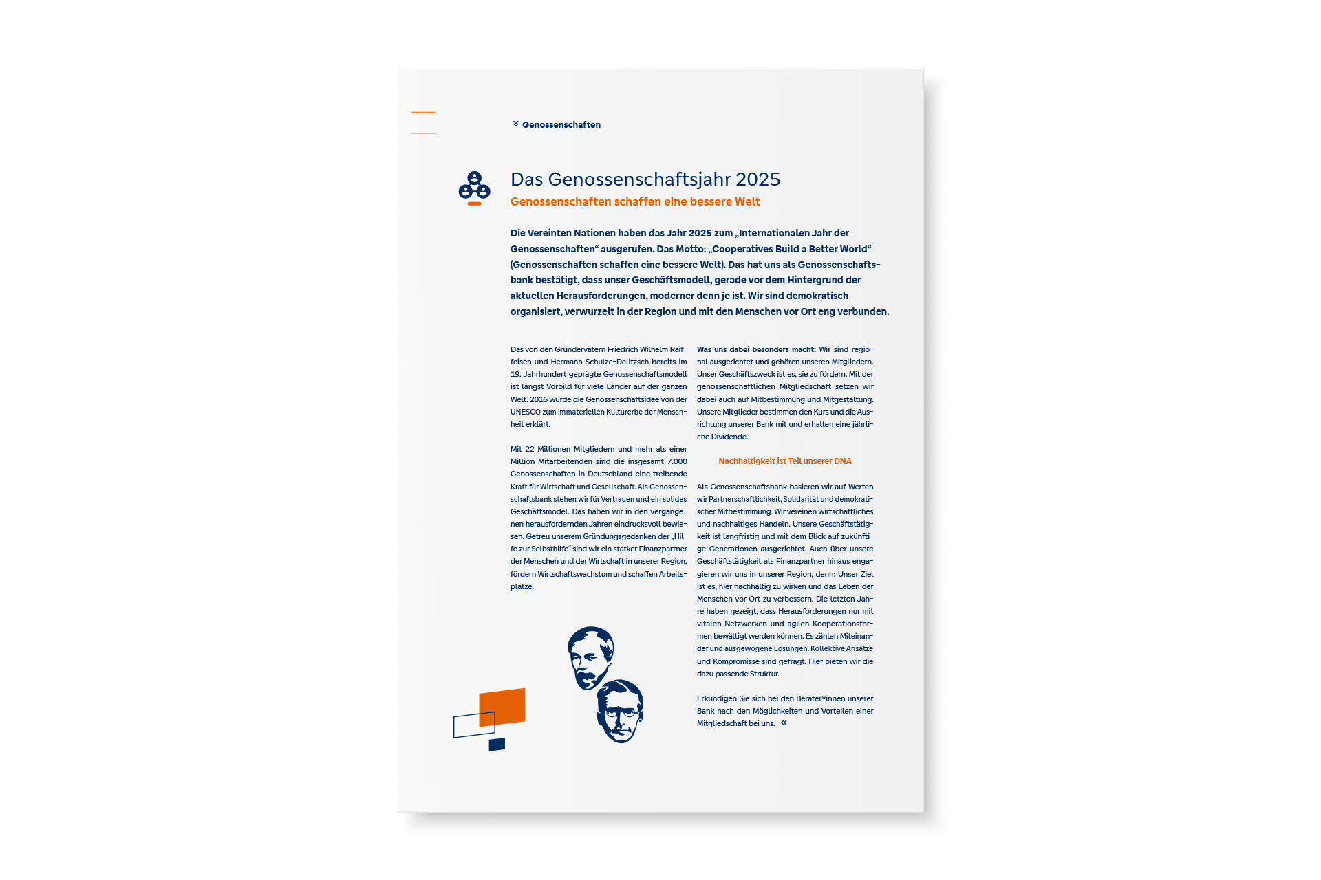 Betonen Sie die Besonderheiten Ihrer Bank, wie zum Beispiel die Genossenschaftliche Beratung.